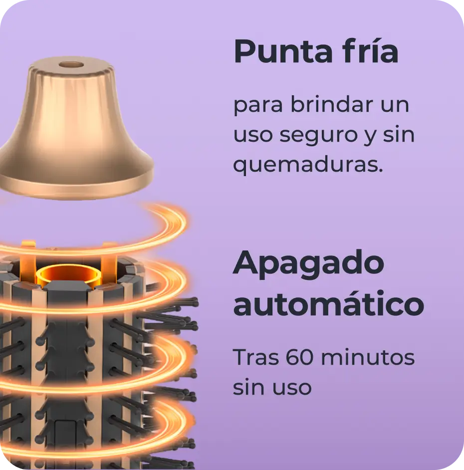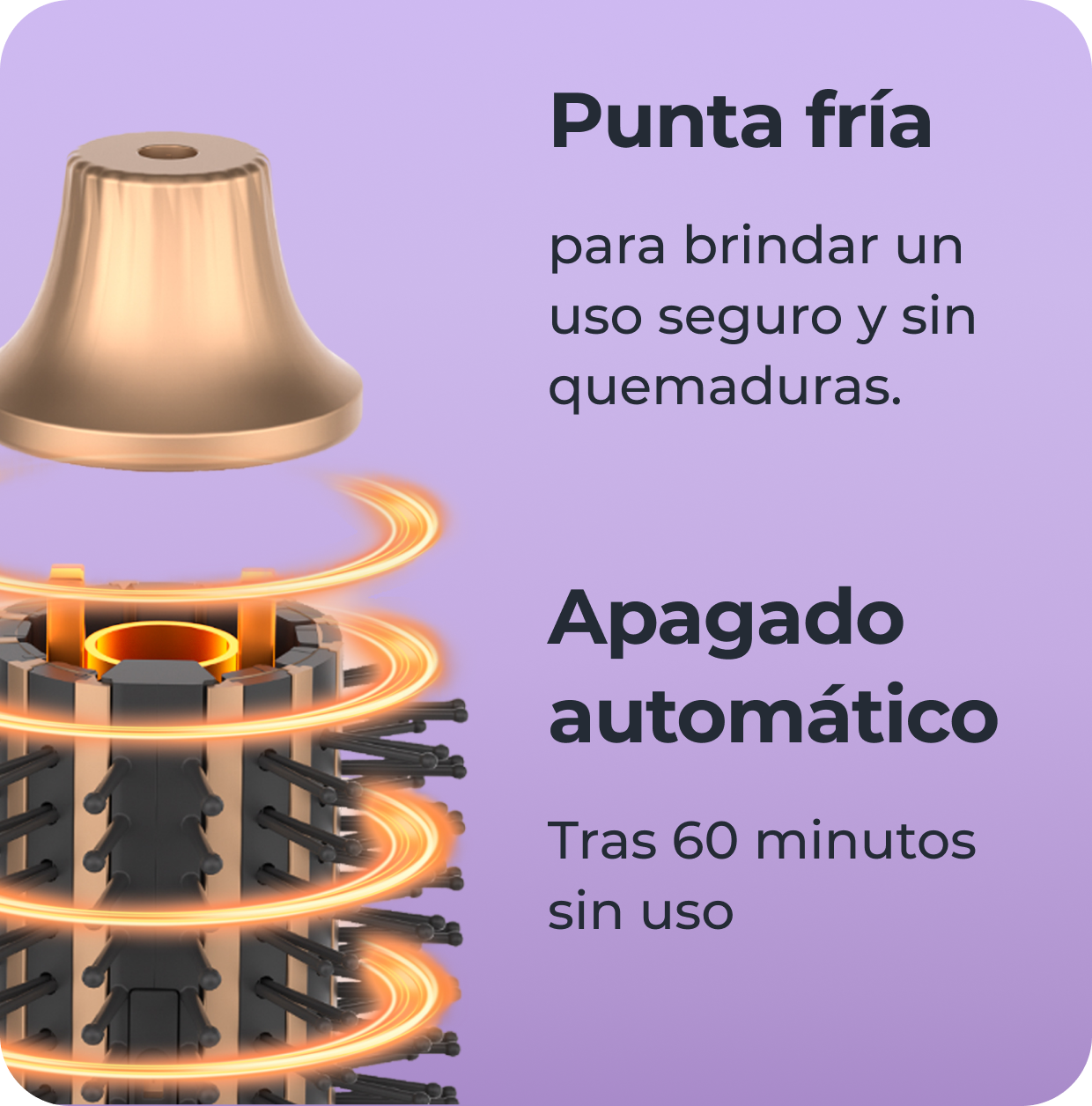 Combina calor uniforme con placas cerámicas y cerdas 360°.